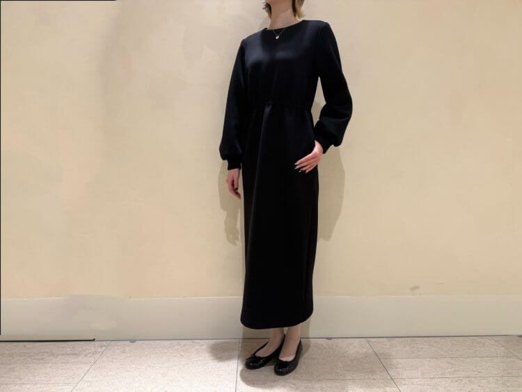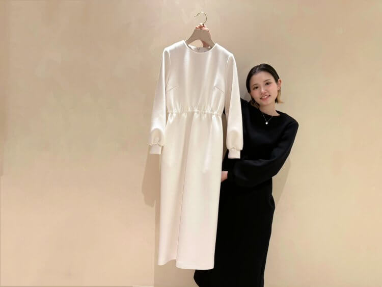 ふくらみとハリ感のあるダンボールニット素材を使用したワンピース。