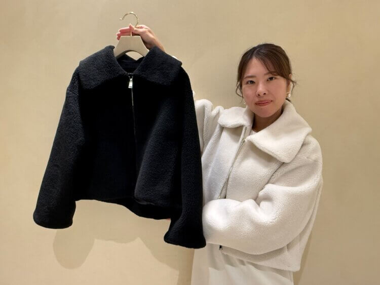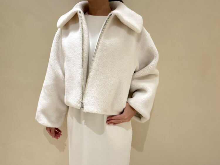ふんわりとしたボア素材が魅力の暖かさと軽さを両立したアウター。すっきりと短めの丈感がスタイルアップを叶えるシルエットです。ワンピースにもパンツにも合わせやすく、重心が上がることでバランス良く着こなせます。顔まわりを華やかに見せてくれる大きめの襟は、立体感があり小顔見えも期待できるデザイン。さらに、ジップディテールがコーディネートのアクセントになり、開け方によって表情を変えられるのも嬉しいポイントです!