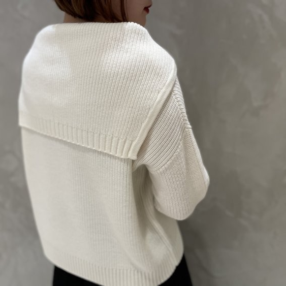 フィット感のあるニット合わせでよりすっきりとした印象へ◎