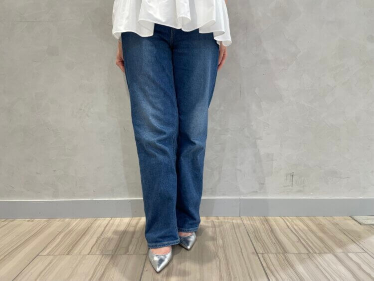 ボトムスにはナチュラルストレッチデニムパンツを合わせて、大人カジュアルなスタイリングに。
