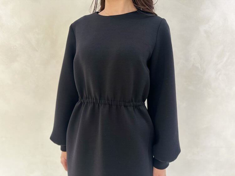 すっきりとしたシルエットの中に、ボリュームスリーブやウエストのさりげないシェイプが女性らしさを引き立て、1枚で完成されたスタイルが叶います。