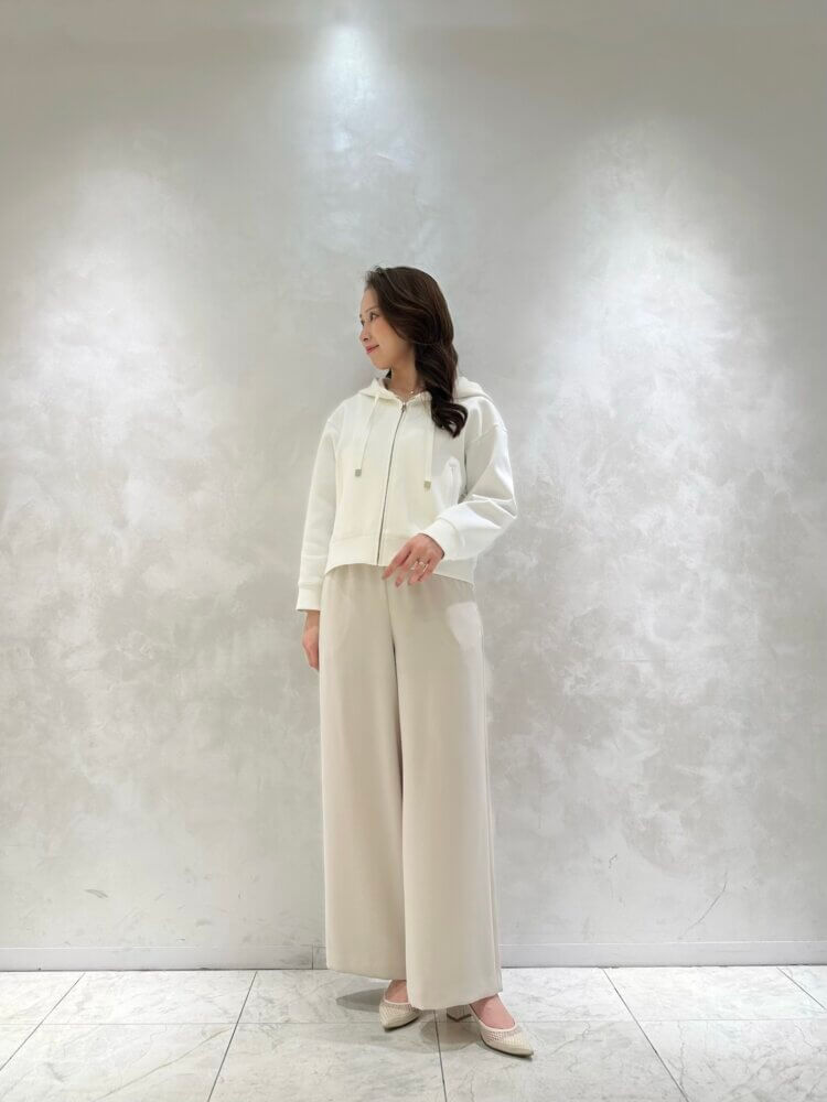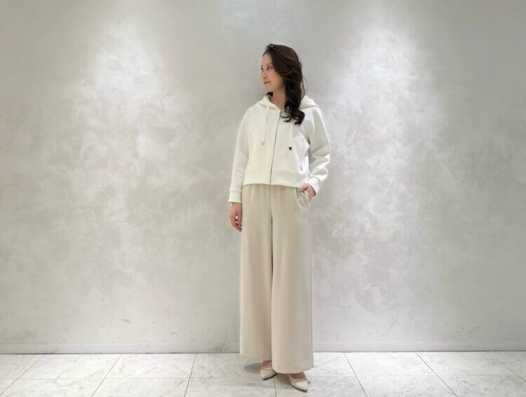 ジップアップパーカーとワイドパンツで仕上げた、クリーンなワントーンスタイル。スポーティさに品の良さを添えた、大人のリラックスコーデをご紹介!