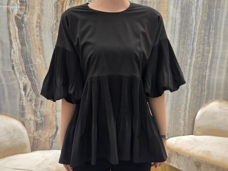 繊細なアコーディオンプリーツとふんわりとしたバルーンスリーブが印象的なブラウスを主役にしたコーディネートのご紹介!