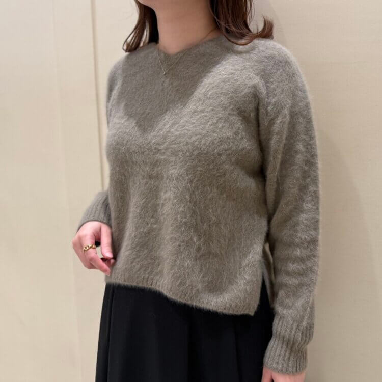 首元はVネックのデザインになっており、タートルニットとの相性も抜群!