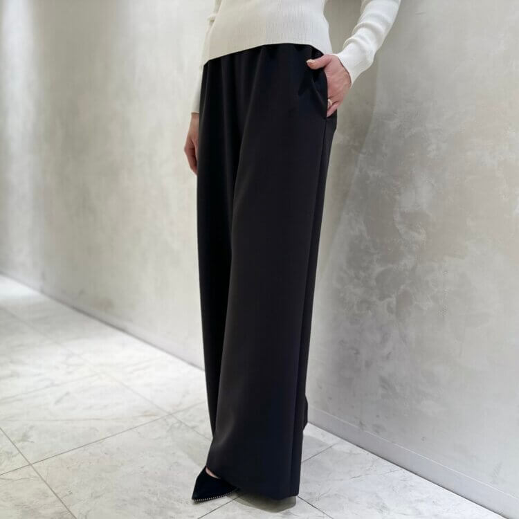 フロント部分に施された斜めのラインとウエスト部分の切り替えで、美シルエットをより引き立たせてくれます。