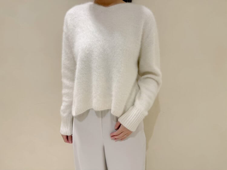 カシミヤブレンドの柔らかなニットプルオーバー