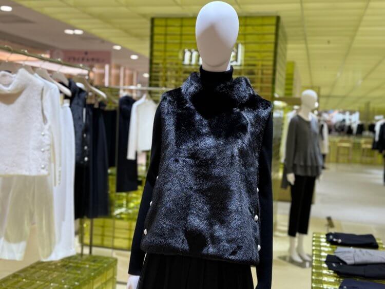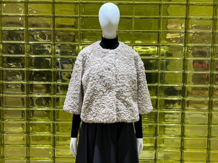 柔らかなエコファー素材が上品な表情を引き立てるショートジレ
