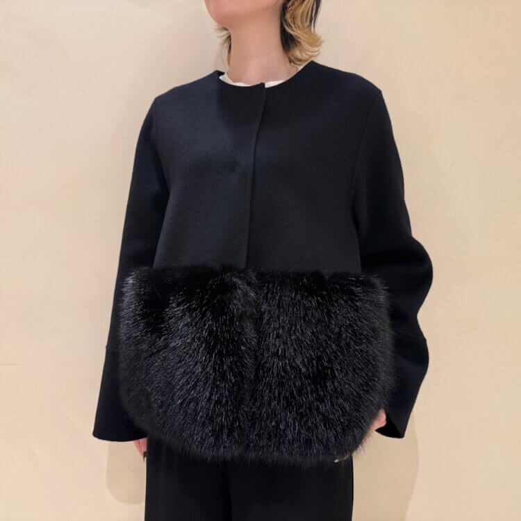 シンプルなブラウスやニットにオンするだけで、高級感溢れる雰囲気へと昇華してくれ、いつものスタイルを格上げしてくれる優秀アイテム。
