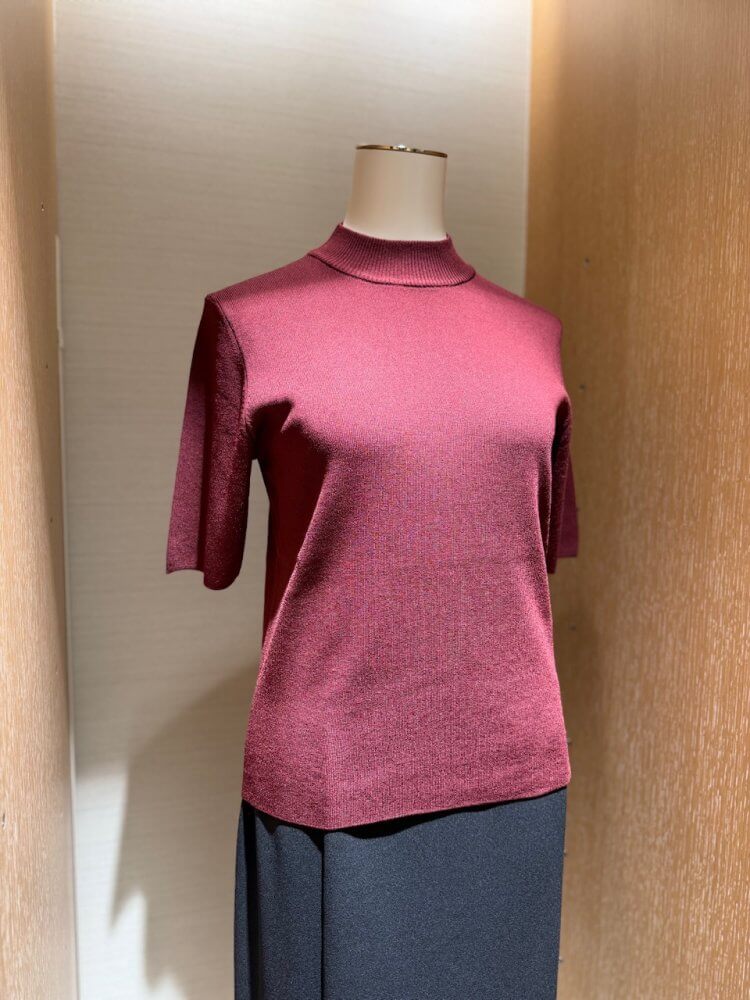 ラウンドヘムハイネック半袖ニットプルオーバー ¥ 22,000