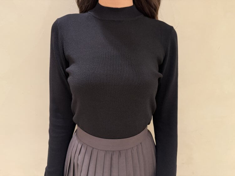 バックラウンドヘムハイネック長袖ニット ¥25,300