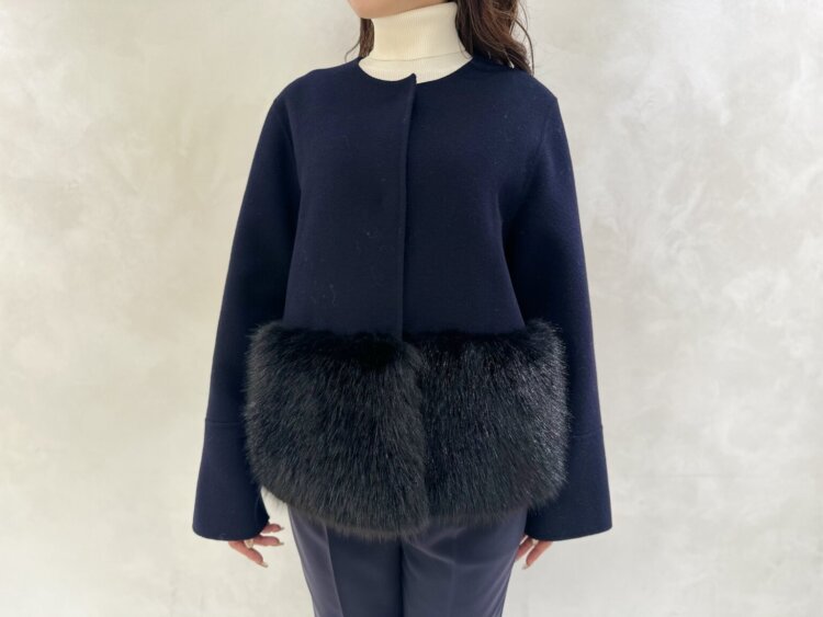 Super100’sフェイクファー切替ショートコート ¥69,300