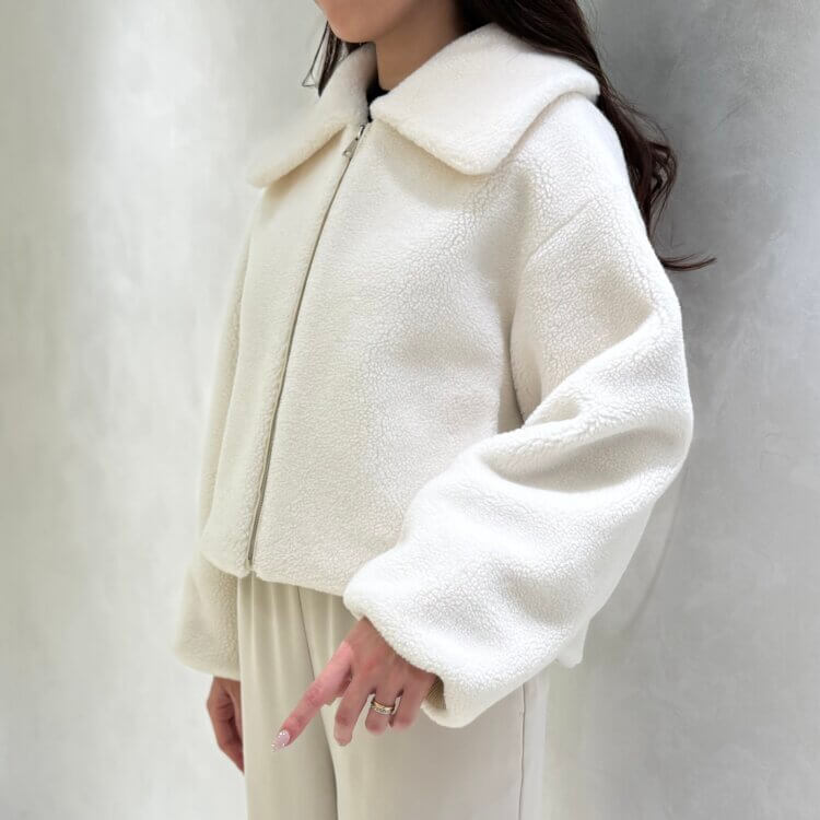 ▼BHスタッフコーデ / 軽やかに冬を纏う。フェイクファー切替ショートコートでつくるモノトーンスタイル