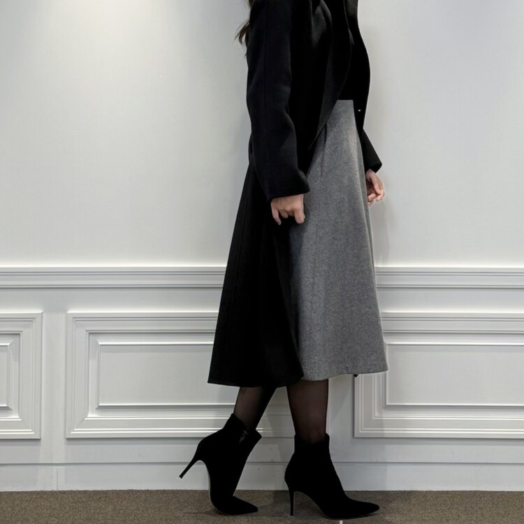 ▼柄違いでもあるこちらのスカート(C436-013/BLACK:005)は、小花柄が印象的です。パフスリーブで、より華やかなでエレガントなコーディネートに。