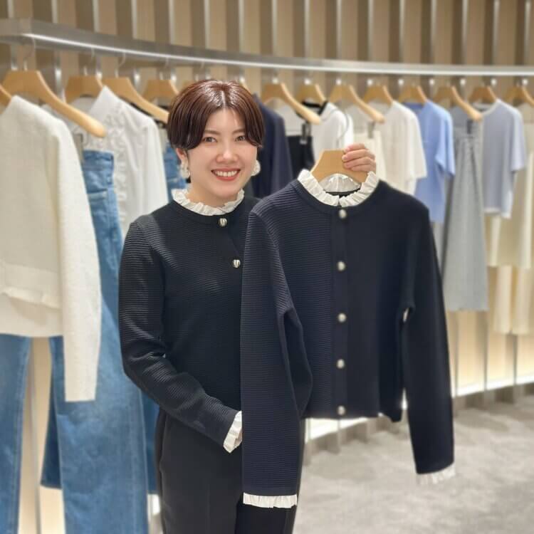 フェミニンになりすぎずにすっきりとした印象に。結び目は中央にするのがポイントです。