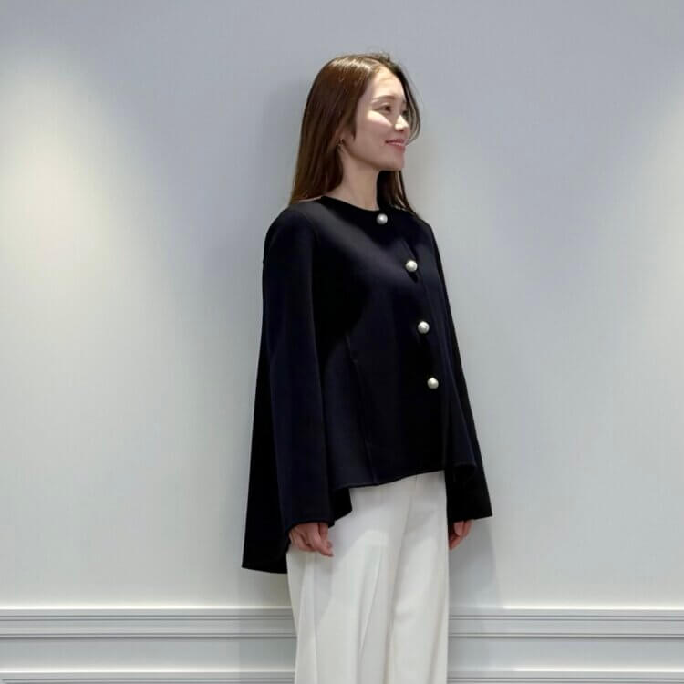 特にお袖がニット素材でフィットすることにより、腕まわりがほっそりと見えてスタイルアップを叶えます♩