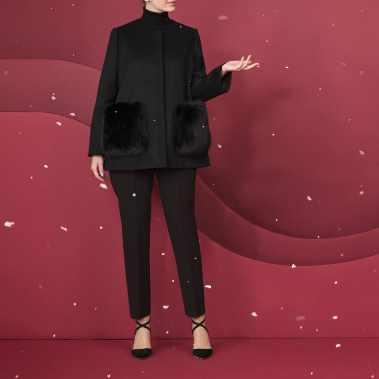 また、ボートネックが全体を落ち着ついた印象にしてくれるため、可愛くなりすぎず、シックな華やかさに。