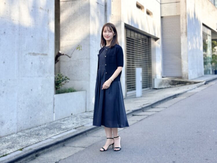 きちんと感が欲しい日も、暑い季節はできるだけ軽やかに過ごしたいもの。そんな時に頼れるのが、上品さと着心地の良さを兼ね備えたネイビーのワンピーススタイルです。本日は、PRESSとしてもおすすめしたい、きれいめ見えが叶うネイビーワントーンコーデをご紹介いたします。