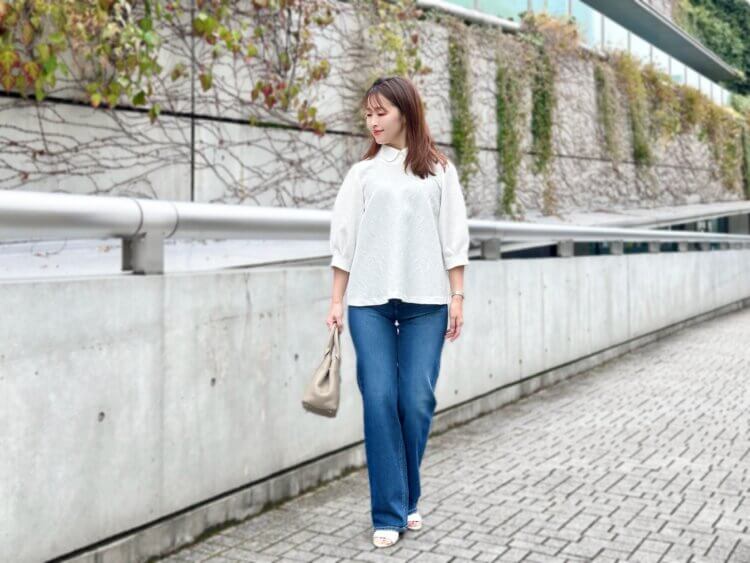 今日は、そんな日に頼れるブラウス×デニムのスタイルをご紹介します。