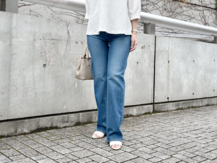 合わせたのは、ナチュラルストレッチデニムパンツ。