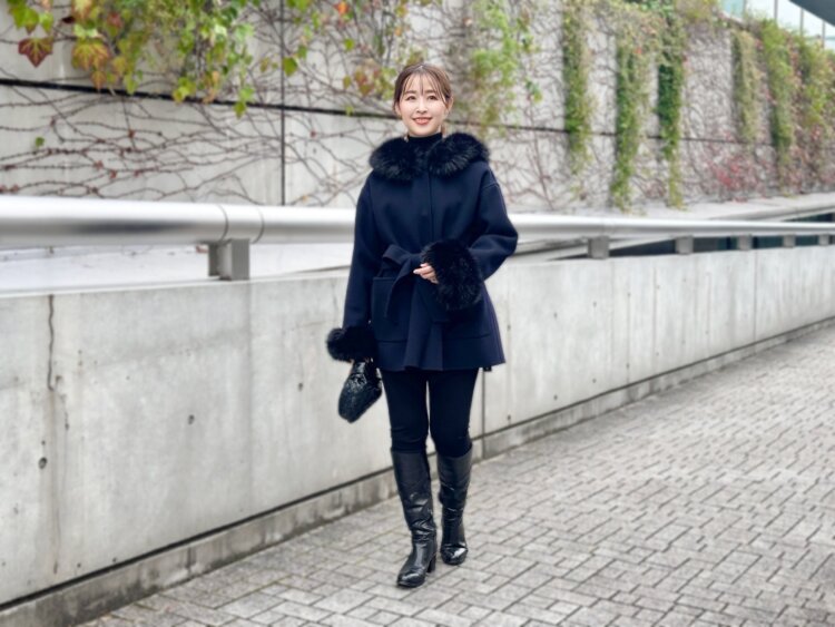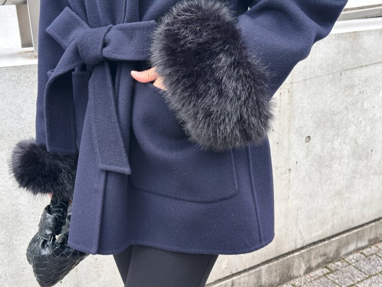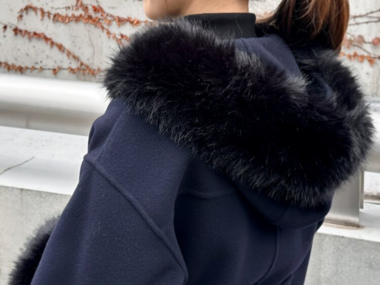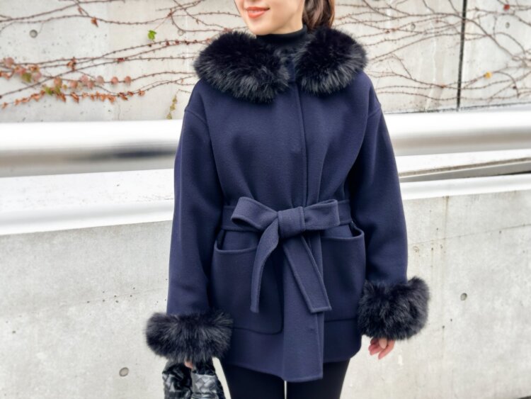 平日の慌ただしさから少し離れて、家族とのお出かけを楽しみたい休日。そんな日こそ、気分がふっと上がる華やかなアウターに頼りたくなります。今回選んだのは、ふわりとしたファーが目を引くネイビーのミドルコート。軽やかな着心地なのに、1枚で“きちんと感”と“華やぎ”が叶う心強い存在です。