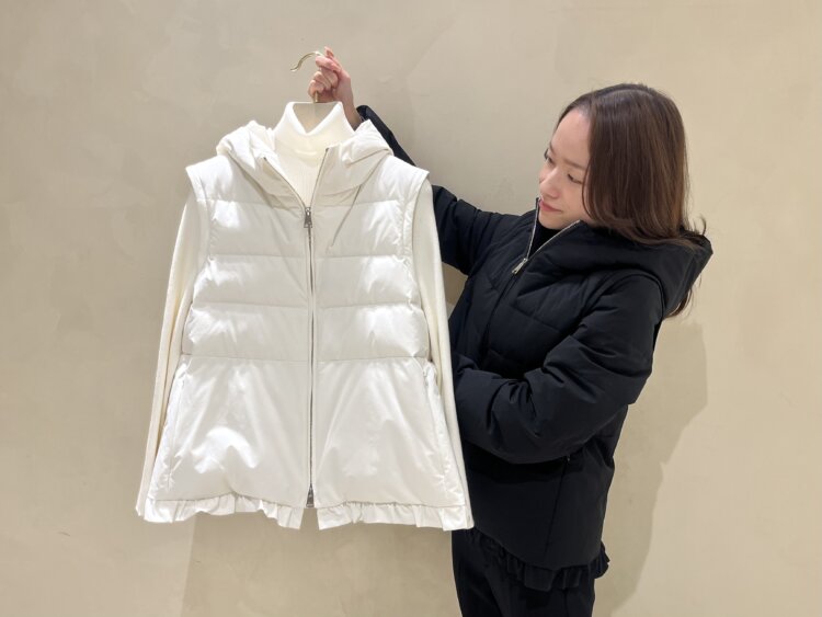 裾にあしらったさりげないフリルが、上品な華やかさを添えるダウンコート。袖を取り外しダウンベストとしてもお召しいただける2way仕様。デイリーにもお出かけにも活躍する、シーズンの主役アウターです。