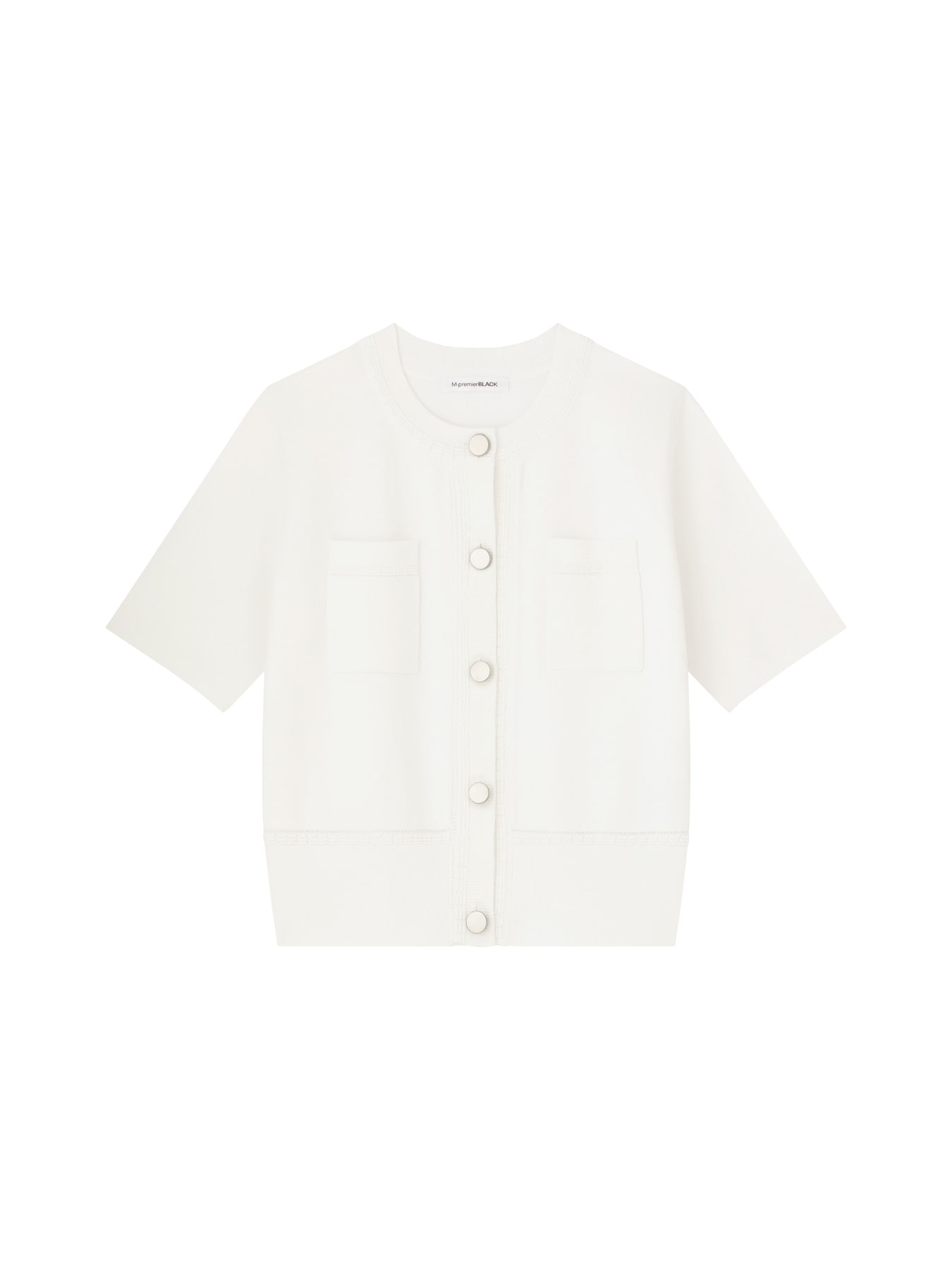 フロントにあしらわれた艶やかなメタルボタンと、さりげなくアクセントを添えるポケットデザインが、シンプルな中にエレガントな表情をプラス。コンパクトなシルエットが上品な印象を引き立て、幅広いスタイリングに活躍します。