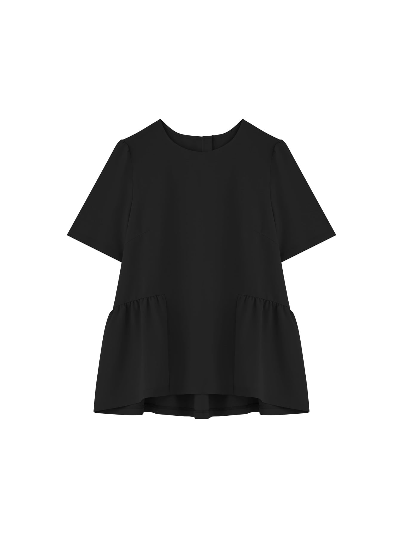 ウエスト位置から広がるペプラムシルエットは、自然な立体感を生み出しながら腰まわりをさりげなくカバー。