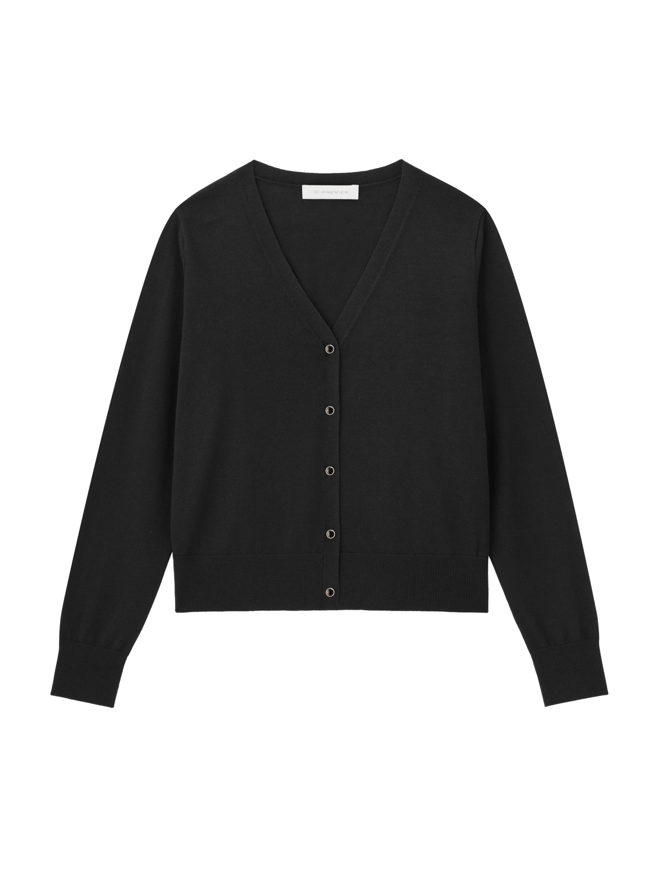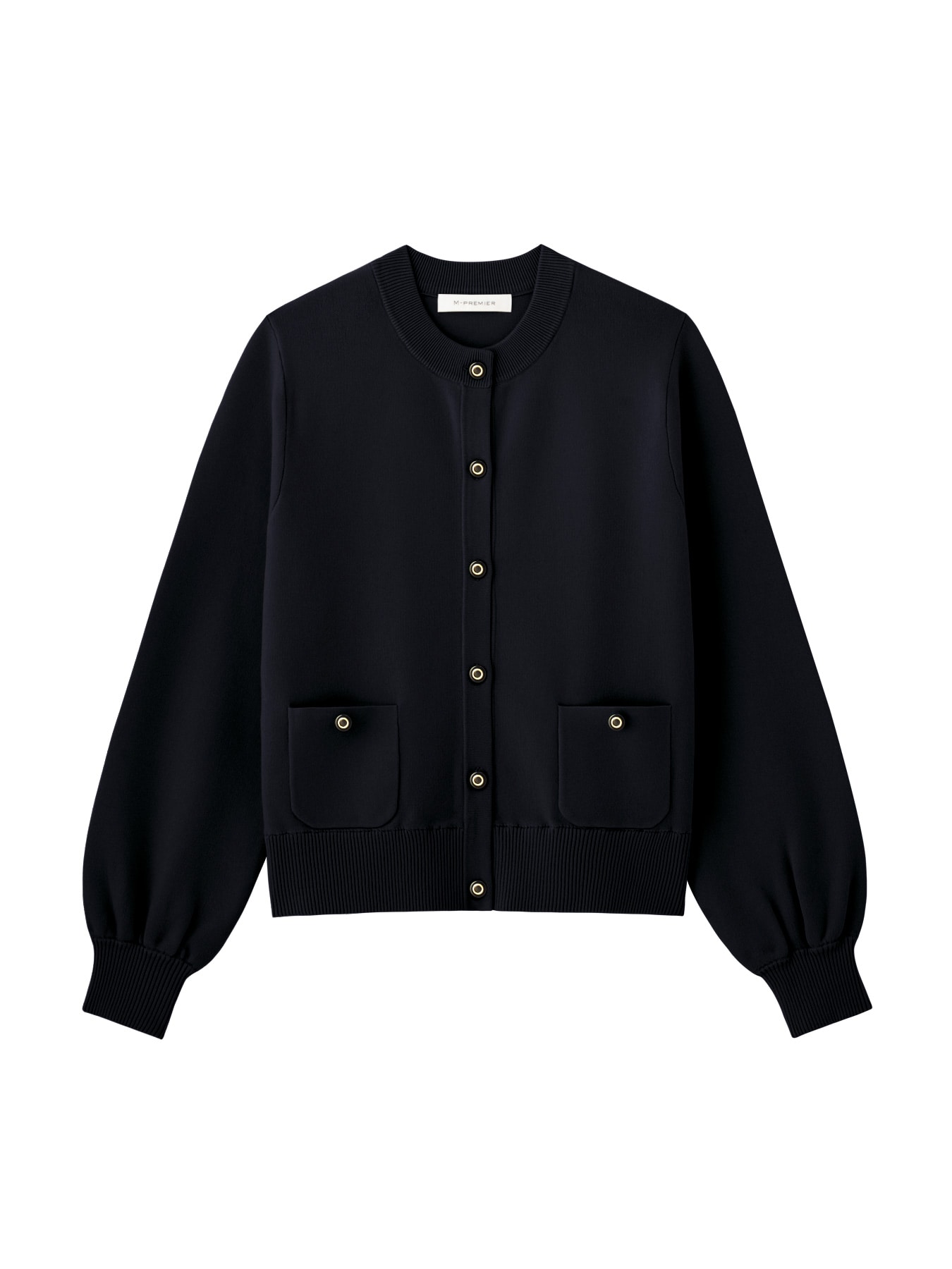 ゴールドの上品な輝きのボタンがデザインポイントになったニットカーディガン。