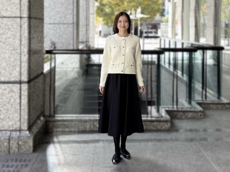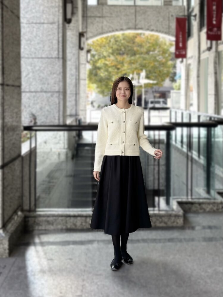 本日は、冬の街並みにそっと馴染みながらも上品な存在感を放つモノトーンコーディネートをご紹介いたします。