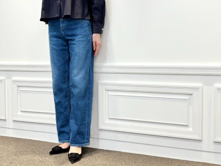 ほどよい厚みと柔らかさを兼ね備えた<ナチュラルストレッチデニムパンツ>。大人のカジュアルシーンに上品に馴染んでくれるデニムです。足のラインをすっきりと魅せてくれるストレートラインが魅力で、ブラウスやニットで綺麗めに魅せたり、カットソーやシンプルなトップスでディリーにと幅広いシーンにご活躍いただけます。