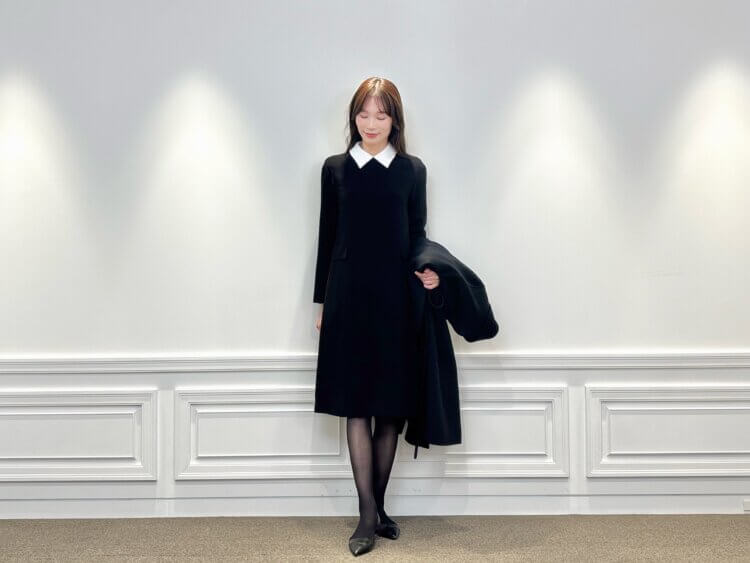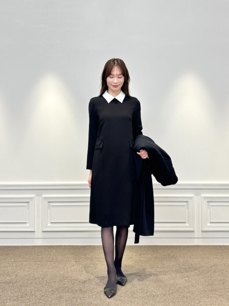 きちんと見えが叶う、白襟ワンピの大人モノトーン
