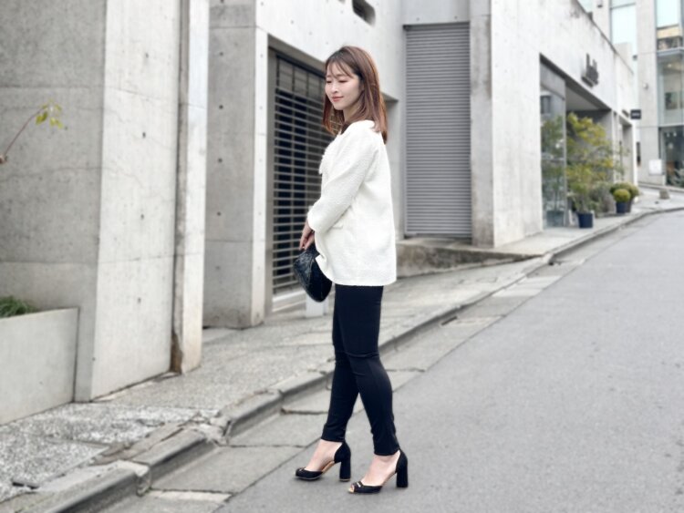 きちんとしたい日はヒールで、少しラフに過ごしたい日はフラットシューズに変えるだけで、雰囲気を変えて楽しめるのも魅力。