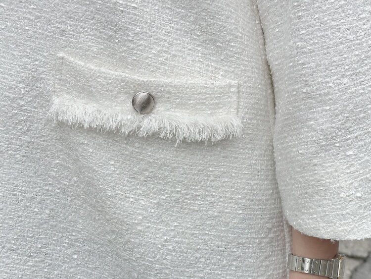 さりげないフリンジやポケットのデザインもポイントで、シンプルすぎず、程よくこなれた雰囲気に。アクセサリーが少なくても、しっかり華やかに見えるのが嬉しいですよね!