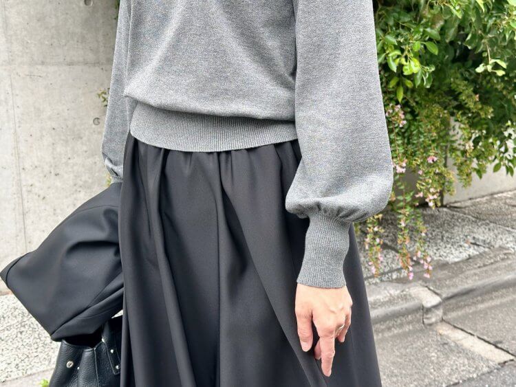 柔らかな素材感で着心地も軽く、朝のバタバタした通勤準備でもつい手に取りたくなる一枚です。