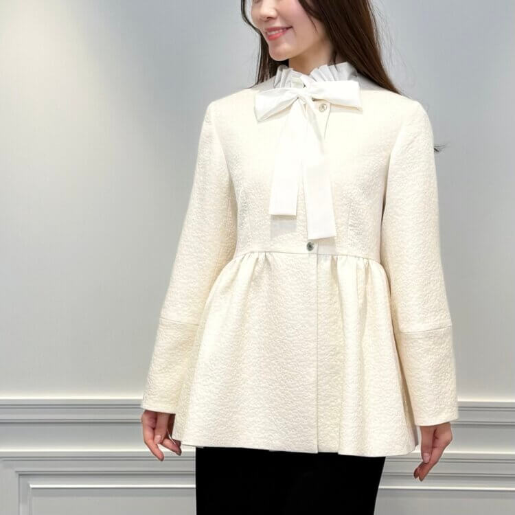 立体感のある、ふんわりと裾に向かって広がるフレアシルエットが360度どの角度から見ても美しく上品な印象に。