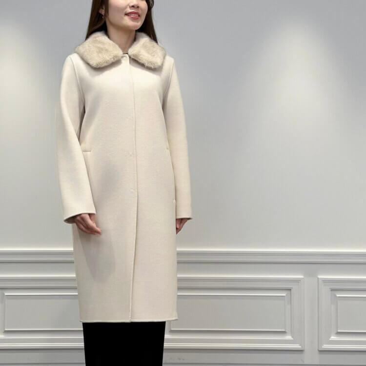 今回はキルティングスカートを主役に、上質なロングコートとフリルニットでまとめたエレガントな冬のコーディネートをご紹介します!