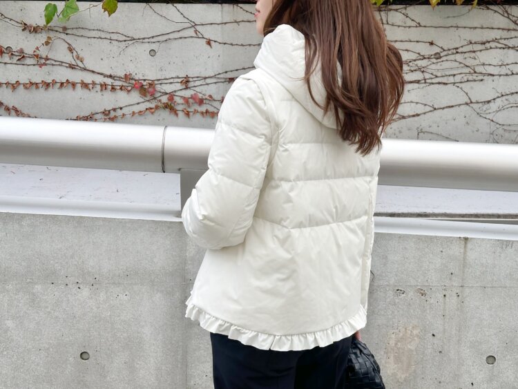 主役は、裾にあしらったフリルがさりげなく華やかな ヘムフリル2WAYダウンコート。