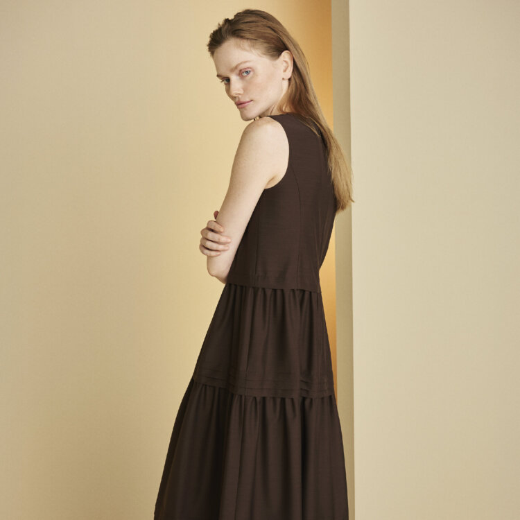 ラッフルフリルデザインにより、お顔周りを華やかに、且つ知的でエレガントな印象に。