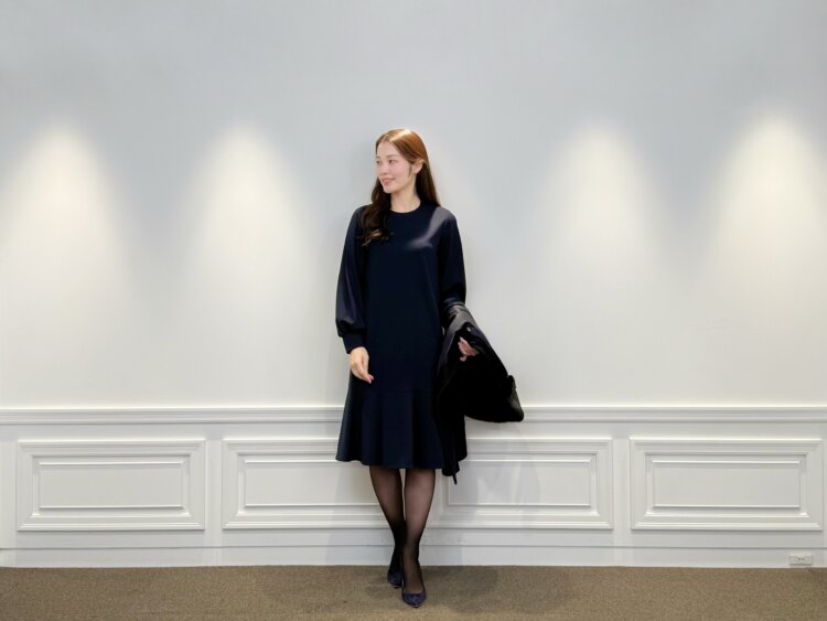 【SALE】ネイビーの奥行きで魅せる上品ワンピーススタイル