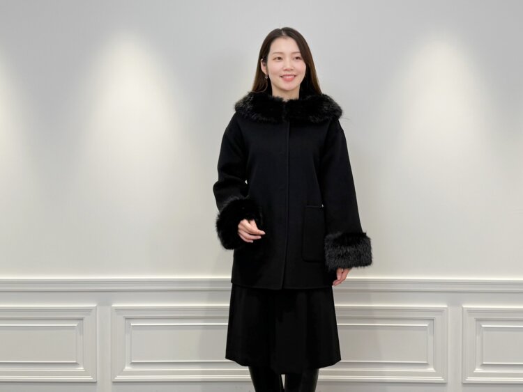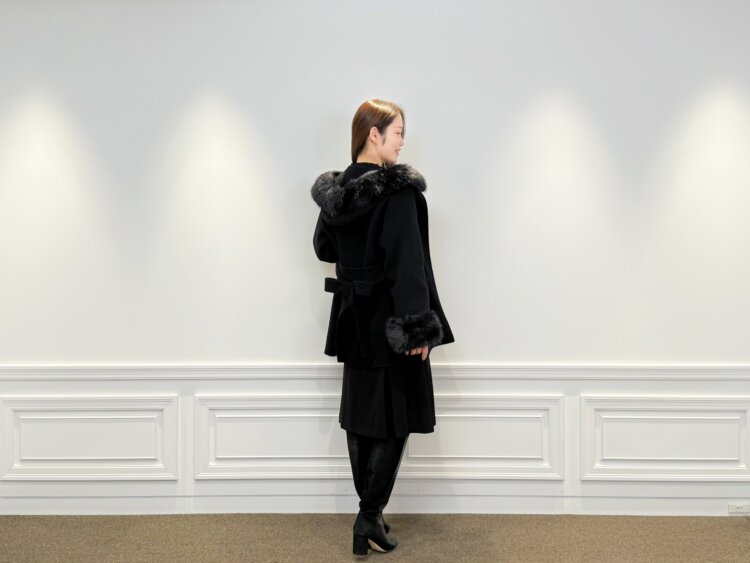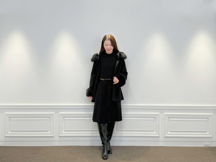 今回は、ファーコートが品よく引き立つブラックコーディネートをご紹介します