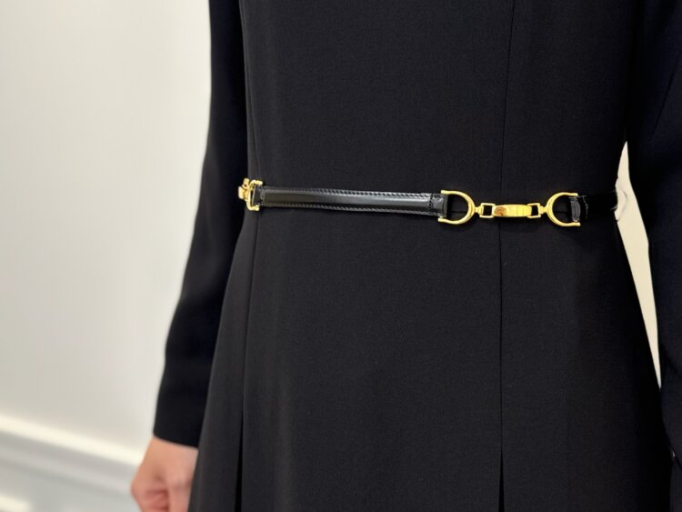 <ダブルクロスベルト付ハイネックワンピース>は、滑らかな表面感と適度な厚みを持つダブルクロス素材を使用し、身体のラインを拾いすぎずに上品なIラインを描きます。ハイネックがシルエットを端正に引き締め、付属のベルトがウエストを高い位置でマークしてスタイル良く見せてくれます。小物次第でフォーマルからデイリーまで幅広く活躍する汎用性の高さも魅力です。