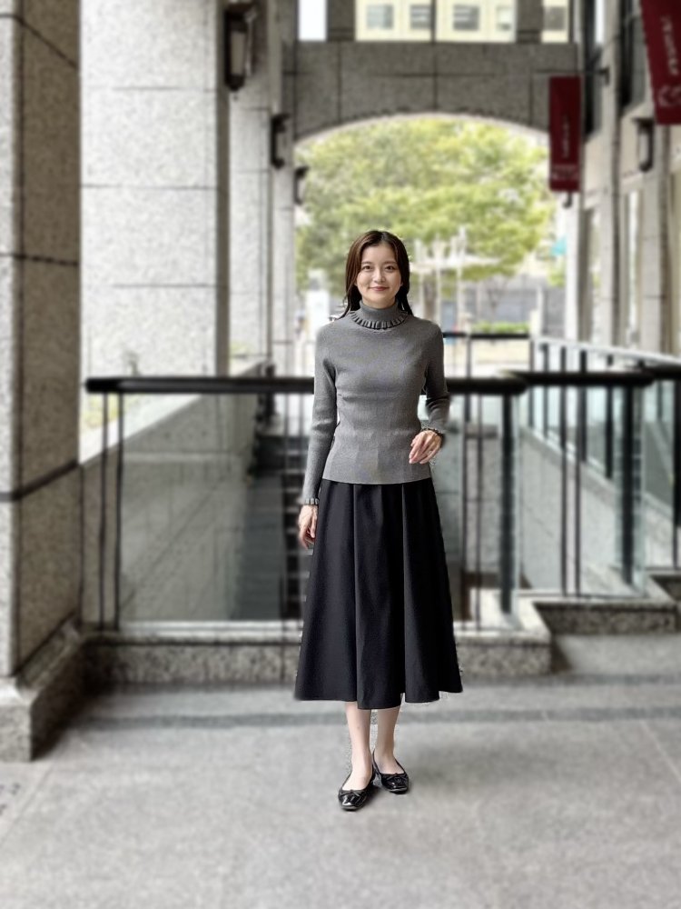 フリルニット×フレアスカートで楽しむ、大人のお出かけコーデ
