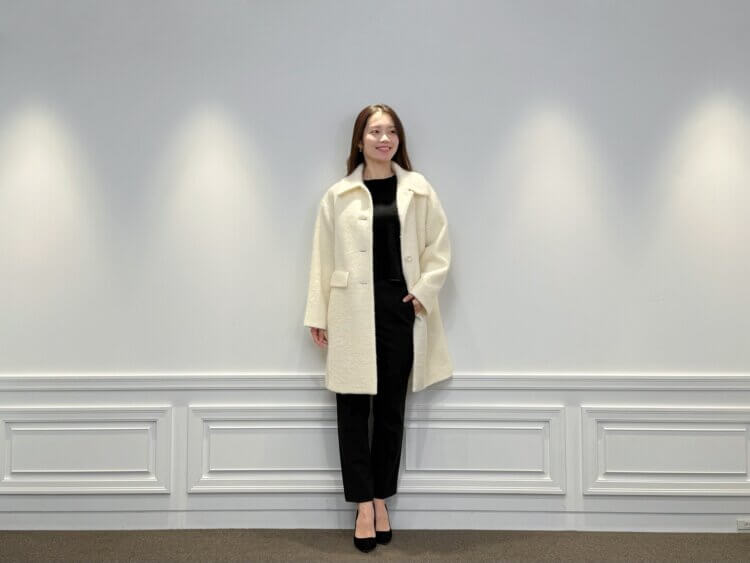 今回はホワイトコートを主役に、ブラックアイテムで引き締めた冬の上品コーディネートをご紹介します!