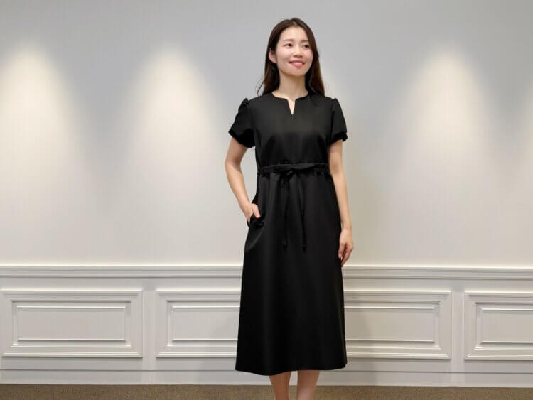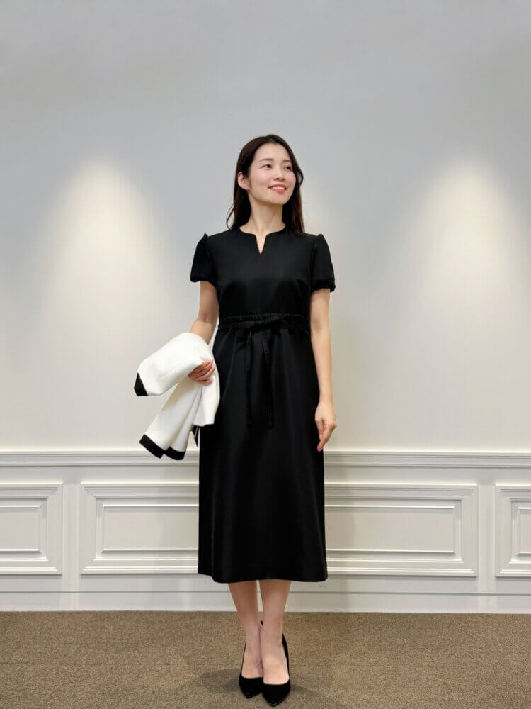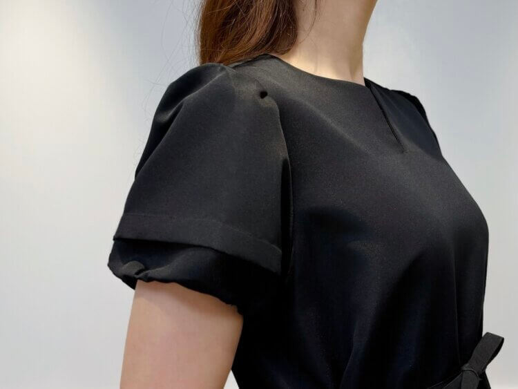 映えする完成度の高さが魅力の<タックパフスリーブワンピース>。タックを施したパフスリーブが立体感を生み、シンプルなブラックカラーでありながら印象的なシルエットを演出します。身体のラインを美しく見せつつ、きちんと感も備えているため、オン・オフ問わず活躍。ジャケットを重ねた際にも存在感を失わず、スタイリングの軸として頼れる一着です。