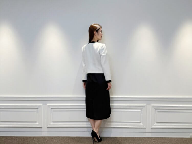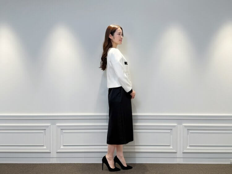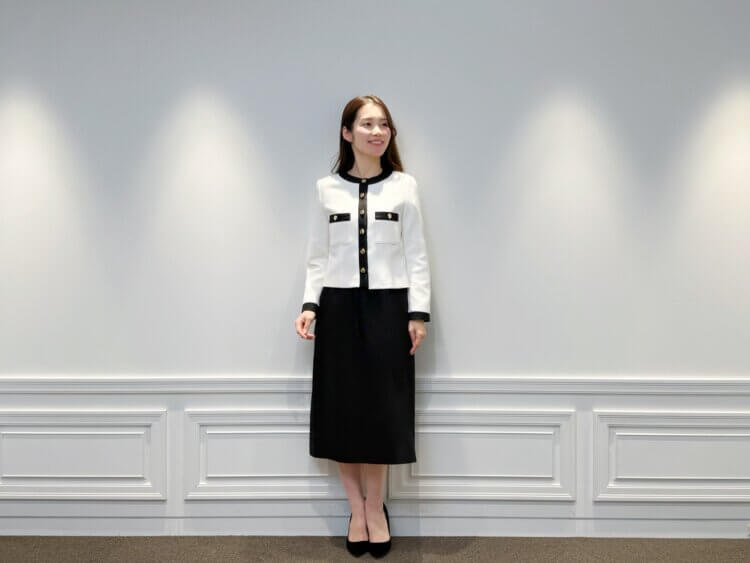 今回はワンピースとツイードジャケット、どちらも主役として楽しめるモノトーンのコーディネートをご紹介します!