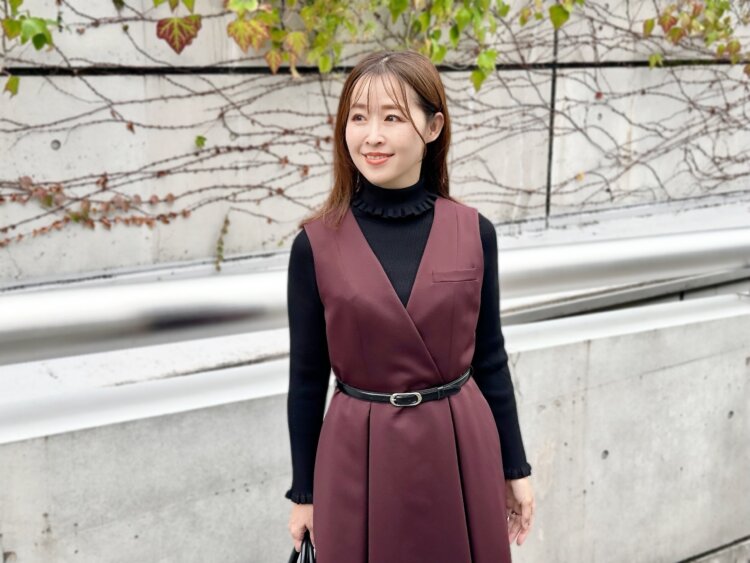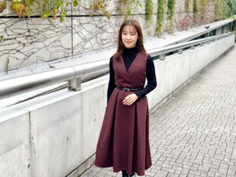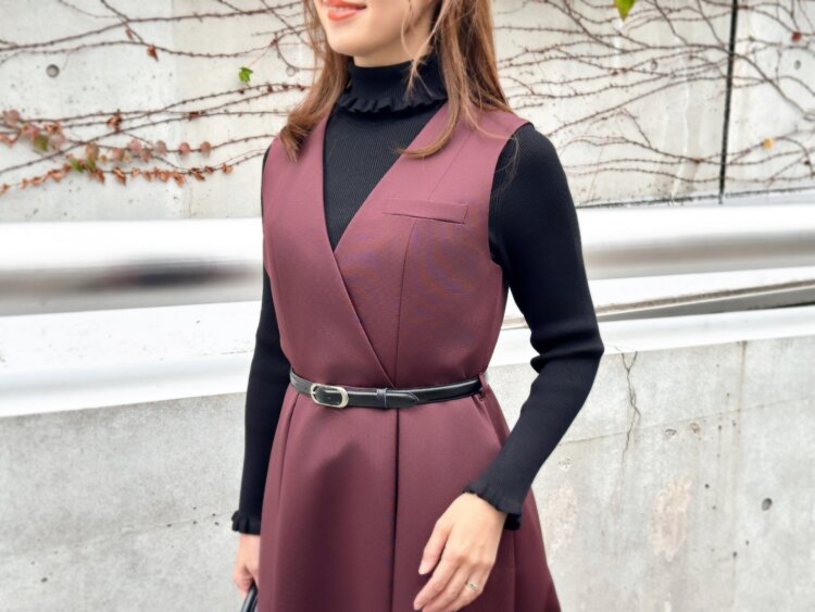 “一枚で気分が上がる”バーガンディのジャンパースカートでつくる冬の華やぎコーデ
