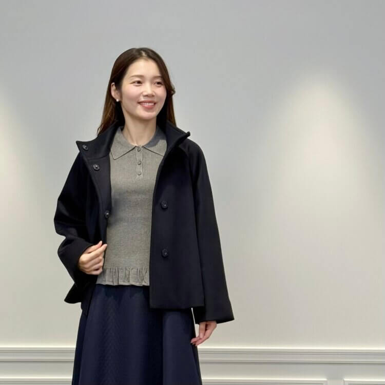滑らかな肌触りとリュクスな光沢感が魅力のロイヤルジーロンリバー素材を使用した繕うだけで高級感漂うショートコート。保温性があり、軽量な着心地です。裾に向かってふんわりと広がるフレアシルエットが、女性らしさとエレガントな雰囲気を醸します!