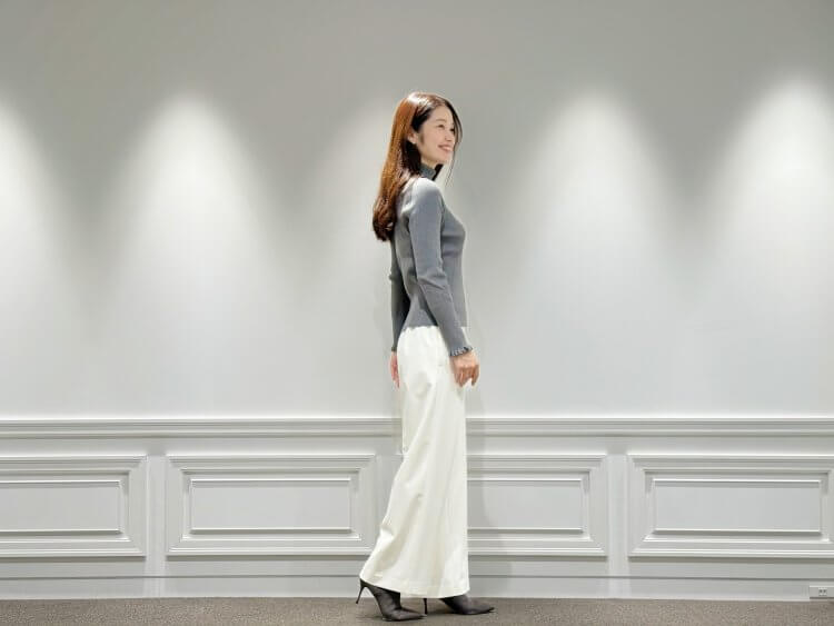 今回は無駄のないデザインながら、素材とシルエットの美しさで印象に残るコーディネートをご紹介します。