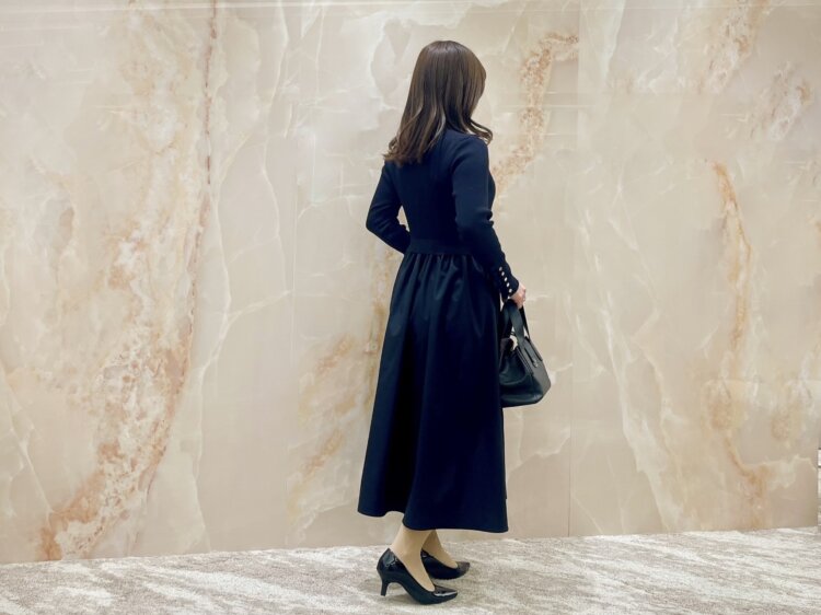一枚でコーデが完成するため、イベントやお食事会などのきちんとしたシーンにはパンプスやきれいめバッグ、エレガントなコートを合わせて。オフの日にはフラットシューズやショートブーツで程よくカジュアルダウンも楽しめます。