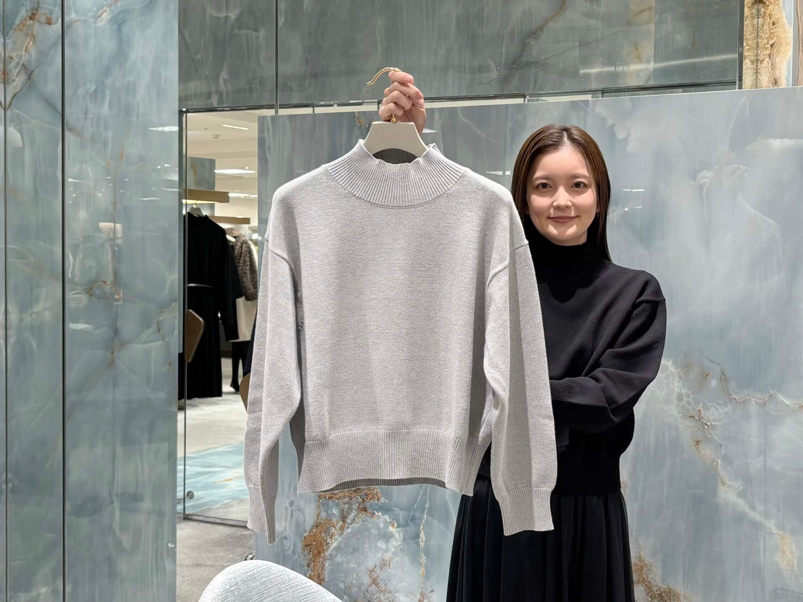 シンプルなデザインながらも首元まで包み込むハイネックが上品な印象を引き立てコートインにも映えるバランスに。